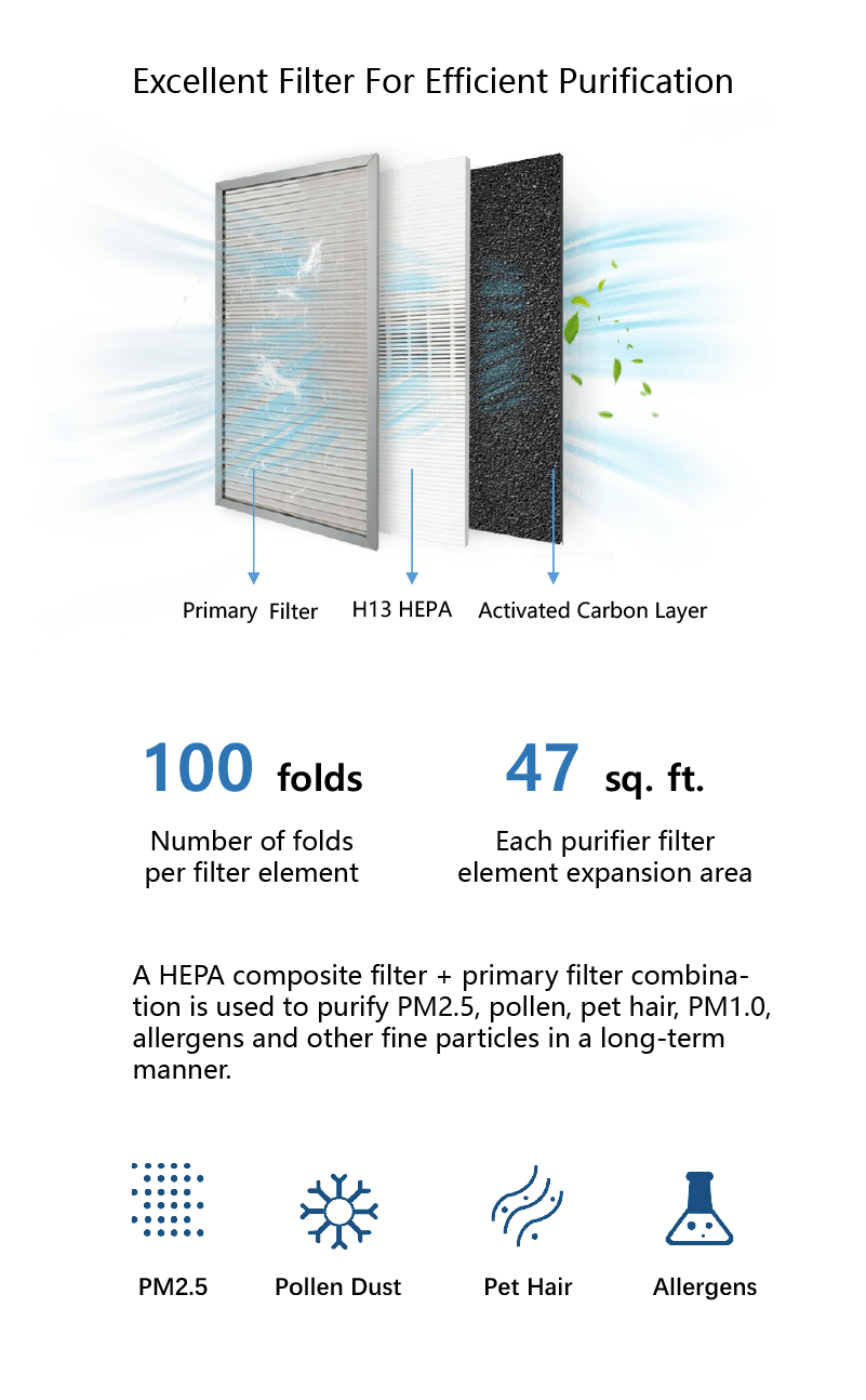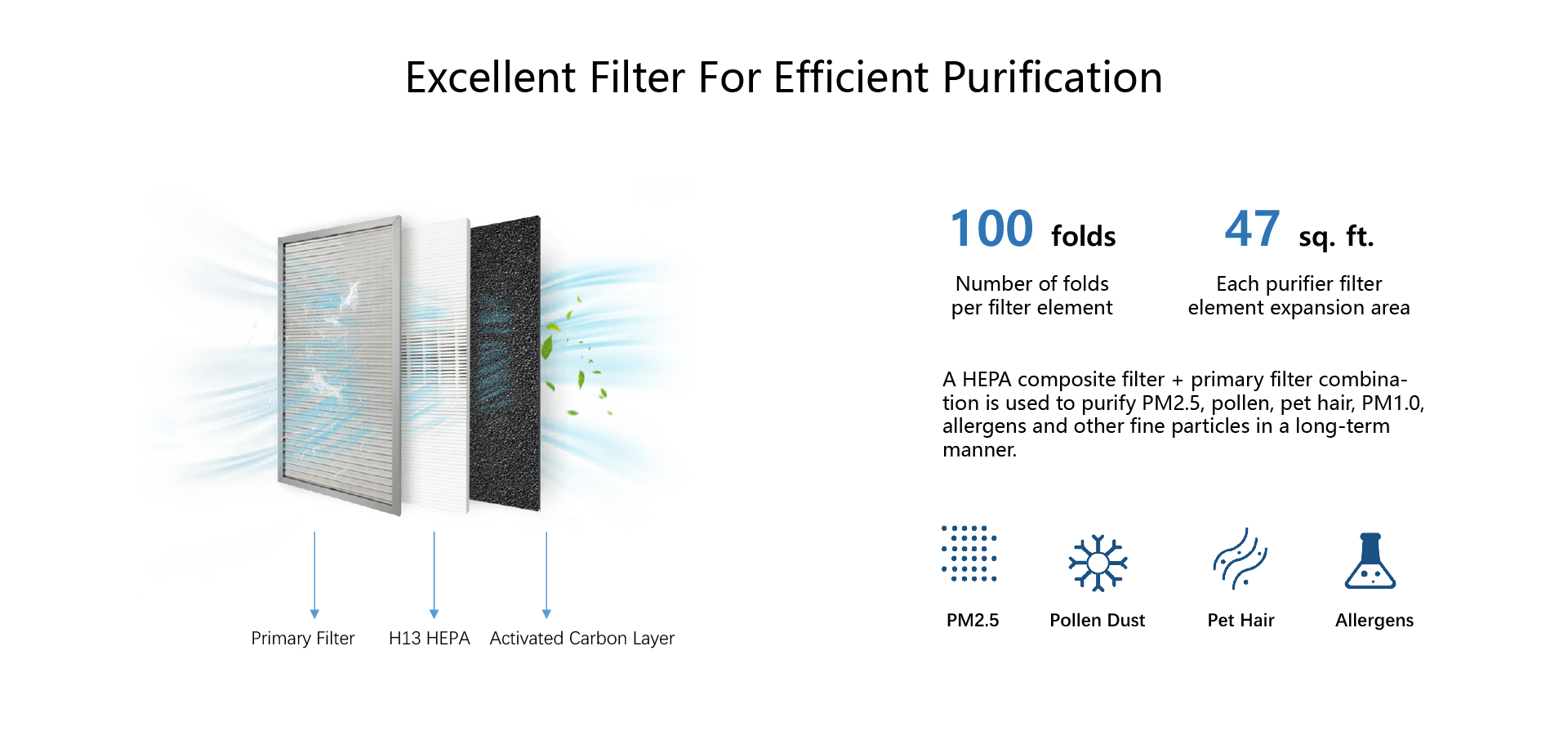 - High-Efficiency Filtration: Captures 99.97% of airborne particles, including dust, pollen, and pet dander.